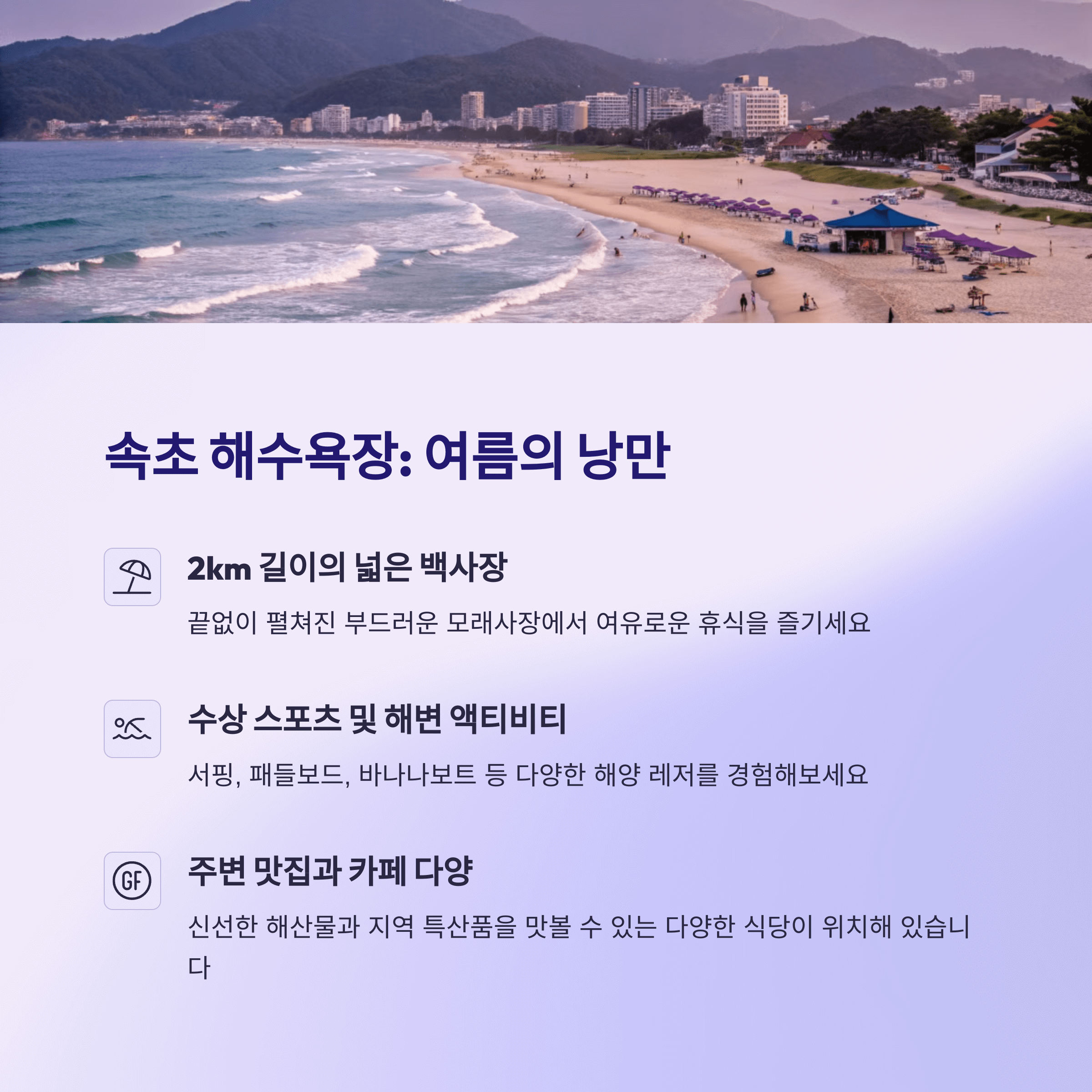 | 속초 해수욕장 | 해변 활동 | 여름 휴양지 | 여름 |